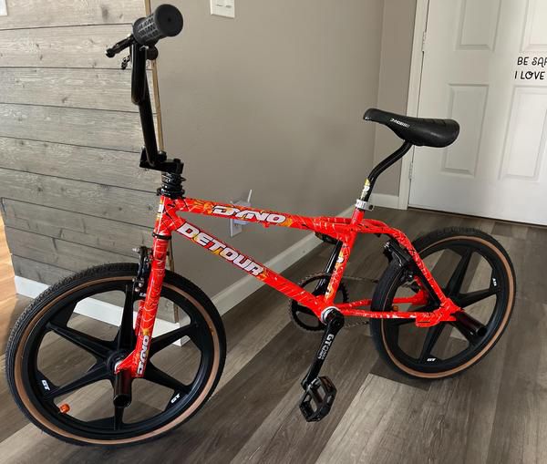 AWESOME 1992 Dyno Detour freestyle BMX bike in dayglo orange splatter original paint.